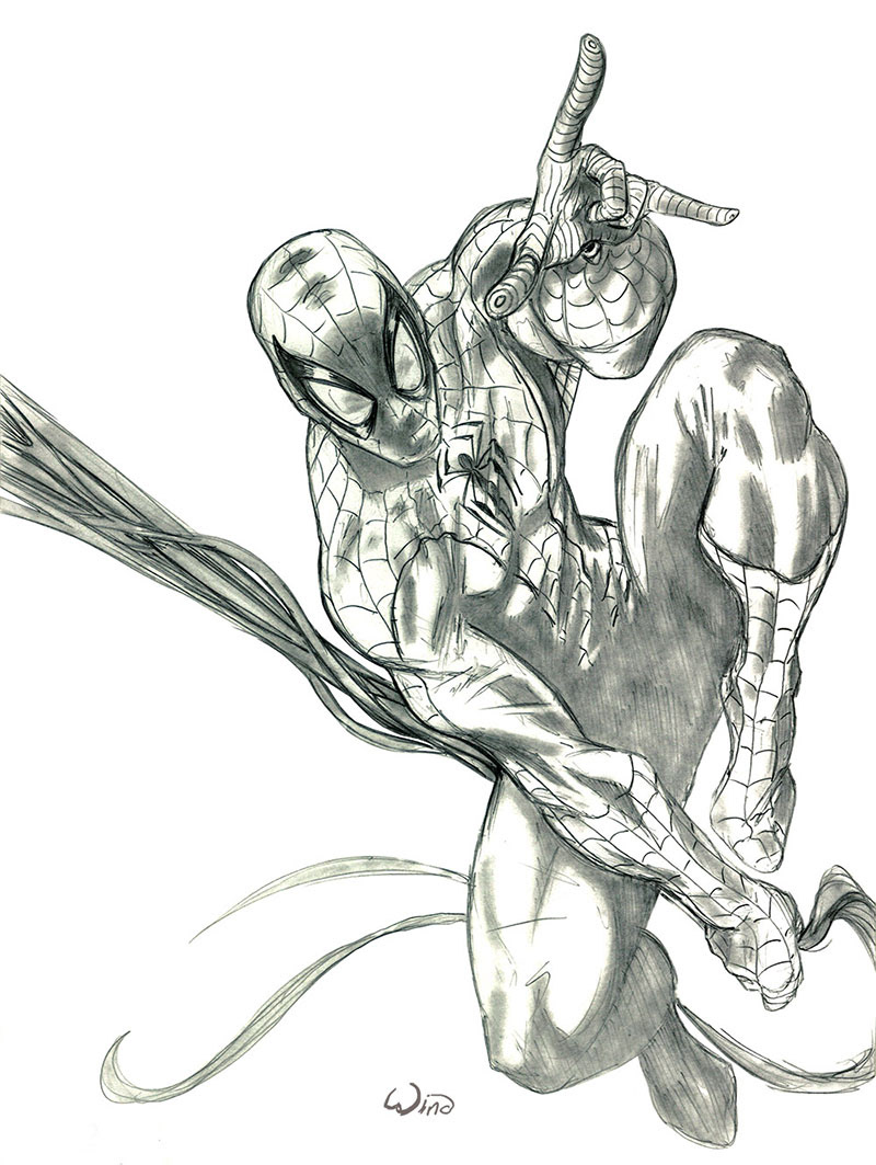 Spider-Man is what got me into comic art in the first place so its fun just to get back to drawing him again. I got into Spidey comics well before the clones and constantly reset story lines so i chose to go with a somewhat classic look for the costume.